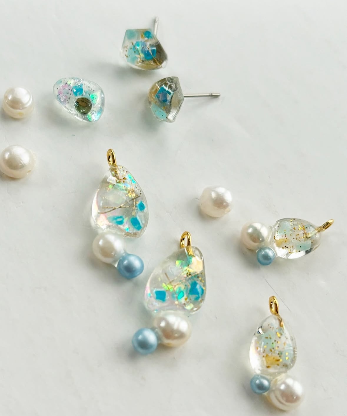 アップサイクル 海洋プラスチックと淡水パール ミニピアス(イヤリング有)