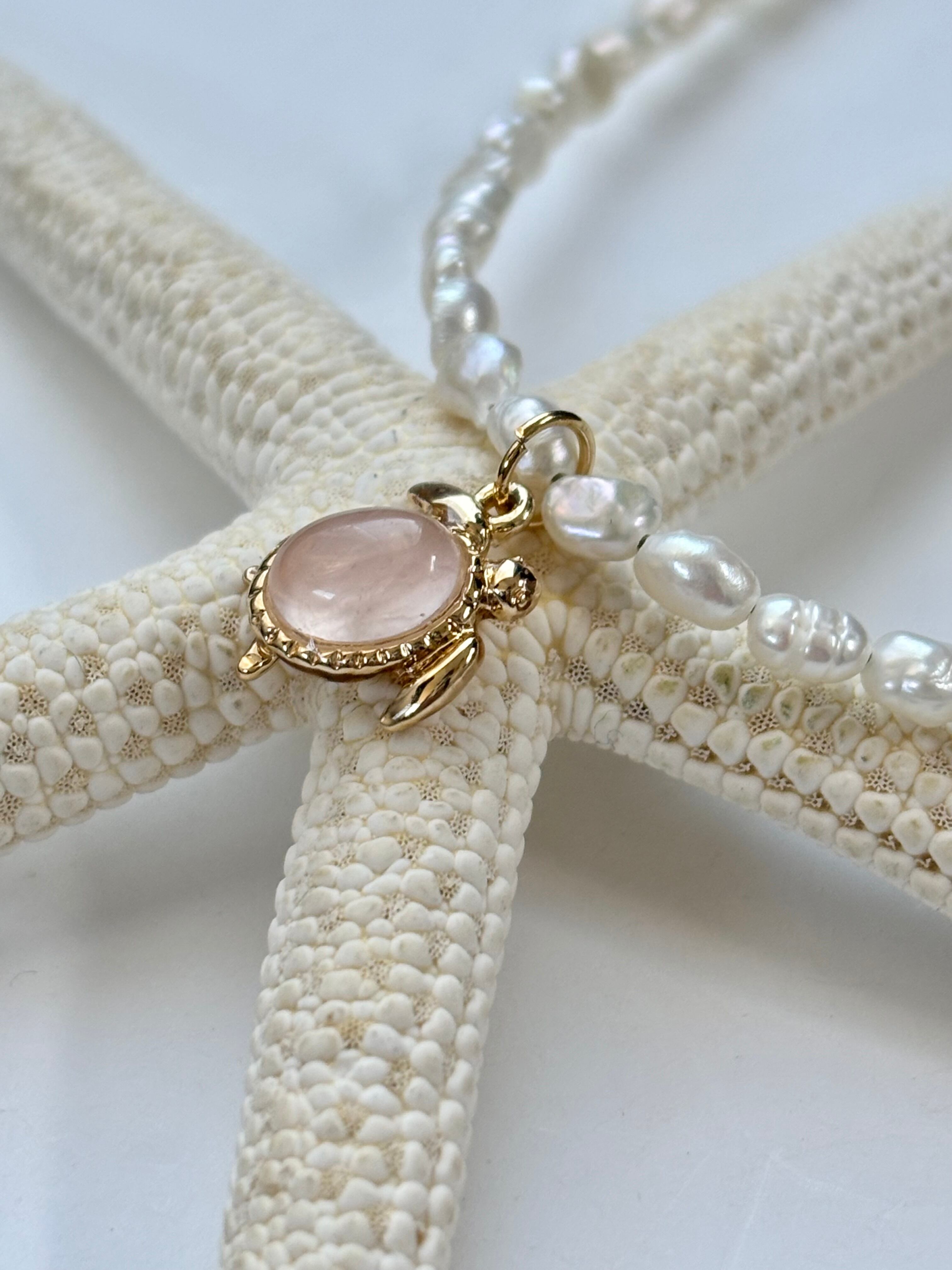 ホヌ×ローズクオーツ 淡水パール ネックレス