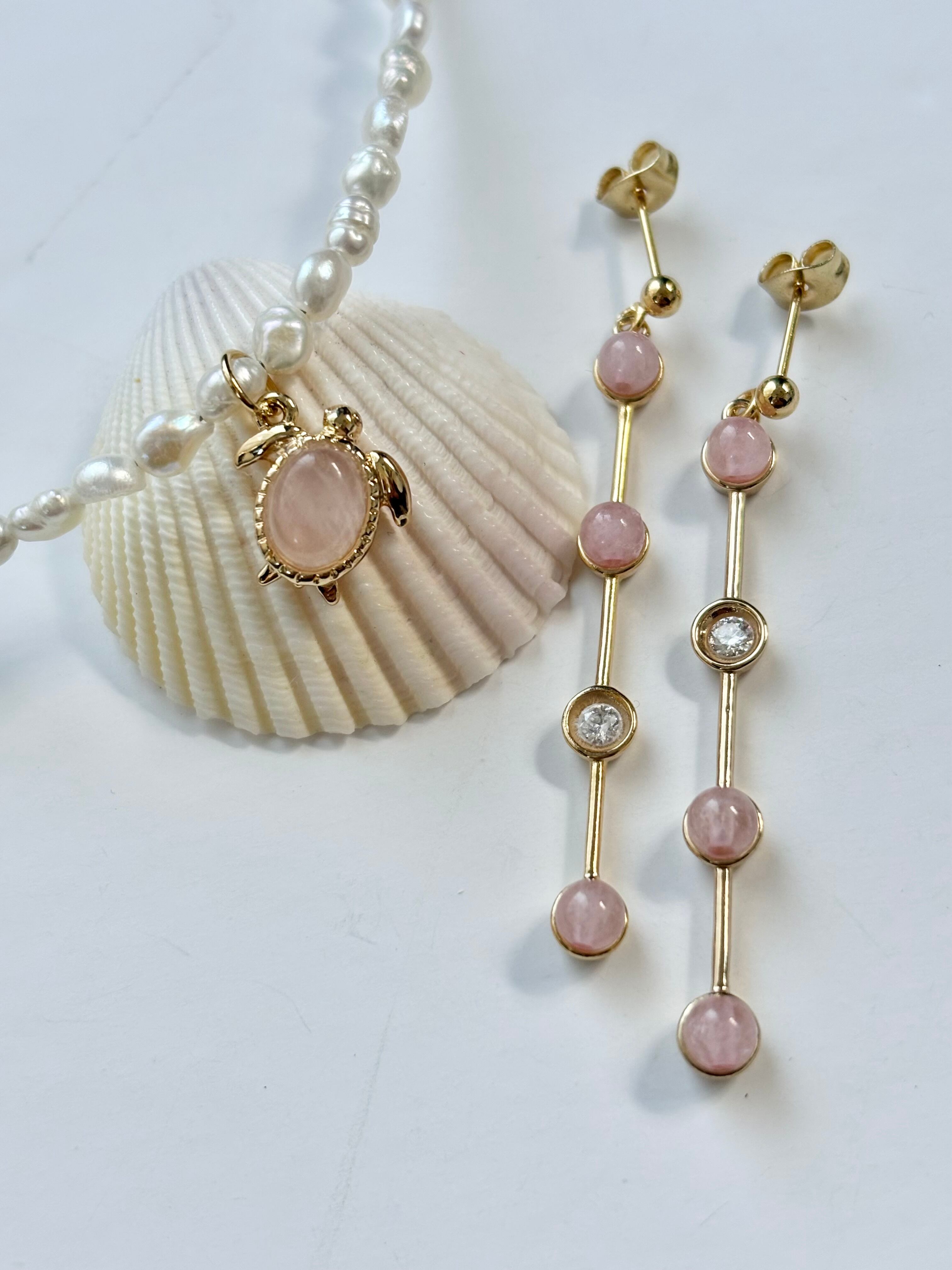 モアサナイト×ローズクオーツ ピアス