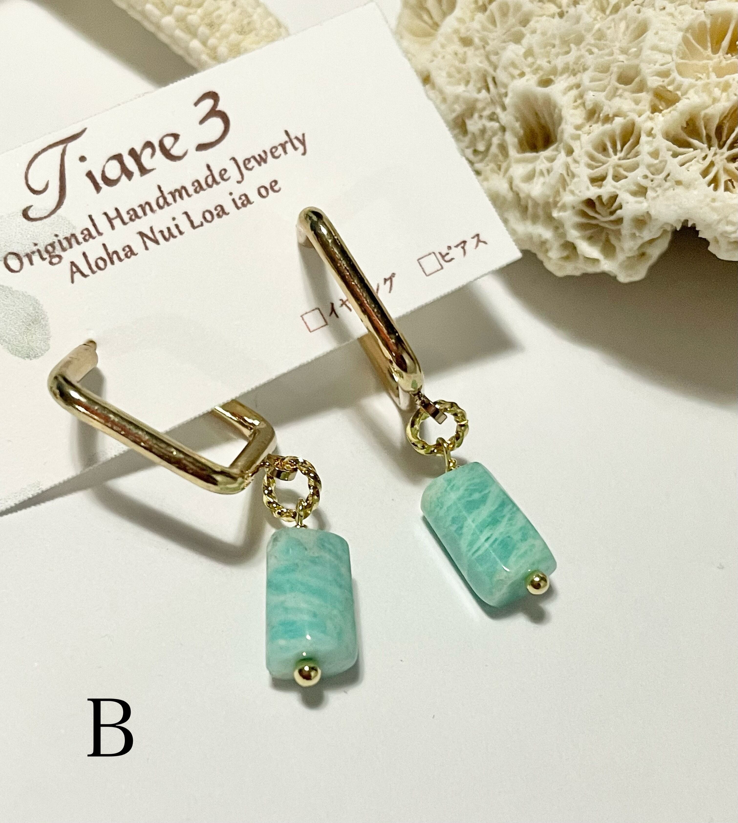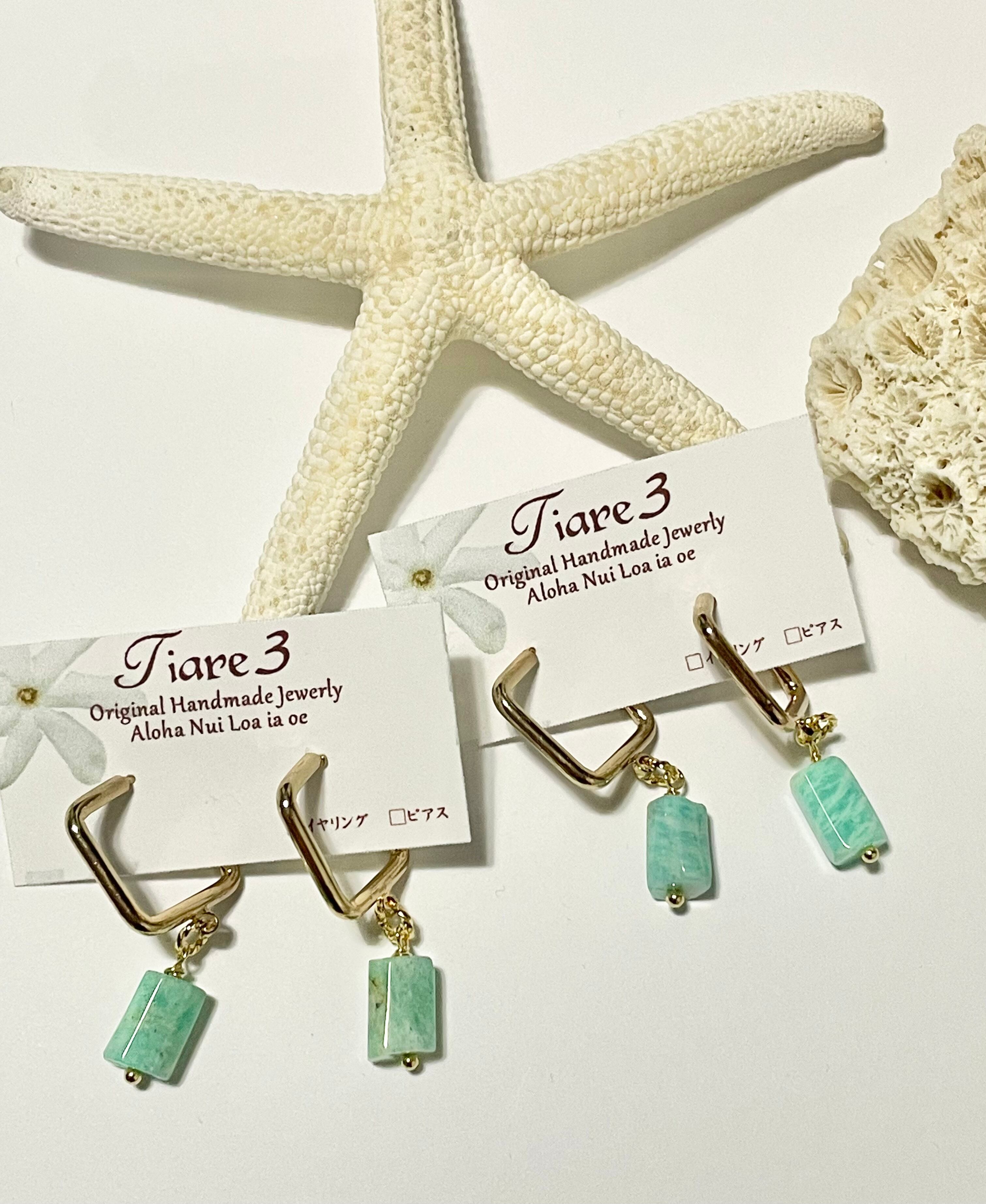 ホープストーン 海のようなアマゾナイト ピアス